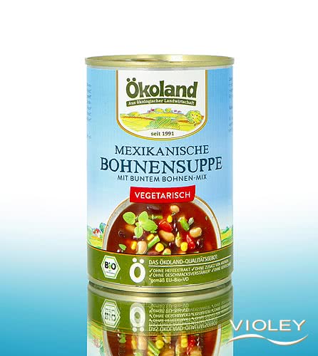 : Bewertungsdatum:Ich habe immer ein paar Dosen von Ökoland zu Hause im Vorratsschrank. Wenn es dann mit dem Essen mal schnell gehen muss, bin ich bestens vorbereitet. Die Mexikanische Bohnensuppe ist sehr lecker und enthält verschiedene Bohnen, Paprika und Mais. Und dazu ist sie noch vegetarisch :-) Sie ist schön würzig abgeschmeckt, aber nicht zu scharf und reicht für einen großen Teller, also für eine Person. Ich mag auch andere Dosengerichte von Ökoland und wechsle immer mal durch. Auch der Preis ist für ein Biologisches Fertiggericht vollkommen in Ordnung. Die Mexikanische Bohnensuppe ist somit durchaus empfehlenswert. Besser schmeckt es nur selbstgemacht.