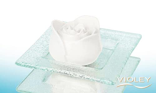 Primavera Duftstein Rosenblüte. Dieser schön geformte Duftstein aus Keramik wird mit einem viereckigen Glasteller als Untersatz ausgeliefert. Der Duftstein besitzt einen Durchmesser von circa 5 cm und eine Höhe von circa 3,5 cm. Der Teller ist circa 10 x 10 cm groß.