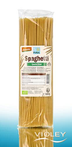 Pural Dinkel Spaghetti. Die Pasta aus Bio-Dinkelmehl kann nach einer Kochzeit von 6-7 Minuten bereits genossen werden. Mit einer leckeren Soße wird es zu einem köstlichen Pasta-Genuss.