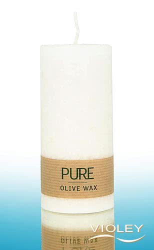 Pure Candle Olive Wax Safe Candle natural. Diese Stumpenkerze aus Olivenwachs ist für fulminante Feste geeignet, aber auch bei kleinen Anlässen passend. Die kristalline Oberfläche des klaren weißen Wachses wirkt elegant und leger zugleich. Bei einer Größe von 130 x 60 mm hat sie eine Brenndauer von ca. 41 Stunden.