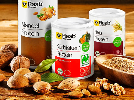 Durch Belastung, etwa beim Training, werden die Muskeln zum Wachsen angeregt. Um Muskeln zu erhalten bzw. weiter aufzubauen braucht der Körper Aminosäuren. Dabei handelt es sich um Makromoleküle aus Eiweißen (Proteinen). Einige davon kann der Köper selbst produzieren. Die sogenannten essenziellen Aminosäuren können jedoch nur über die Nahrung aufgenommen werden. Sportler, die gezielt Muskeln aufbauen wollen, essen daher bewusst zusätzliche eiweißreiche Lebensmittel. Viele Athleten nutzen dafür zusätzlich Proteinpulver. Der Klassiker dieses Nahrungsergänzungsmittels ist das Whey- bzw. Molkeprotein. Für Menschen mit Laktoseintoleranz oder Veganer kommt es jedoch nicht in Frage. Die pflanzlichen Proteinpulver von Raab sind hier eine spannende Alternative. Das Erbsenprotein von Raab ist mit einem Proteinanteil von stolzen 80% eine hervorragende vegane Eiweißquelle. Es ist vielseitig einsetzbar, neben Shakes und Smoothies lassen sich z.B. auch Saucen damit anreichern. Ein echter Klassiker ist auch das Hanfprotein aus 100% Hanfsamenpulver. Reis- und Kürbiskernprotein sorgen für reichlich Abwechslung und geben jedem grünen Smoothie einen extra Energie-Kick. Zusätzliches Protein muss aber nicht immer in flüssiger Form konsumiert werden. Bei Backwaren wie Brot oder Kuchen kann bis zu 25% der Mehlmenge durch Raab Lupinenprotein ersetzt werden. Die Proteinpulver von Raab sind vegan, laktosefrei und eine gute Wahl für alle, die ihre tägliche Eiweißzufuhr um ein paar Gramm erhöhen wollen. Nur trainieren müssen Sie noch selbst.