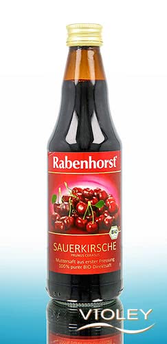Rabenhorst Sauerkirsche Muttersaft. Prunus Cerasus. Bio-Kirschsaft aus erster Pressung. Sorgfältig ausgewählte, aromatische Sauerkirschen werden in der hauseigenen Kellerei von Rabenhorst zu einem puren Direktsaft verarbeitet. Genießen Sie den Sauerkirschsaft pur oder nach Belieben verdünnt.