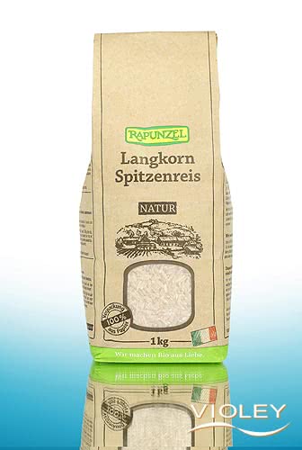 Rapunzel Langkorn Spitzenreis natur. Mild-aromatischer Allround-Reis mit extra schlanken Körnern. Naturbelassen. Das lange, schmale Korn von 6-8 mm Länge ist namensgebend für Langkornreis. Trotz seiner glatten Oberfläche klebt der Langkornreis nach dem Kochen leicht und nimmt Saucen sehr gut auf. Als Beilage für eine Vielzahl von Gerichten - für die kreative Küche.