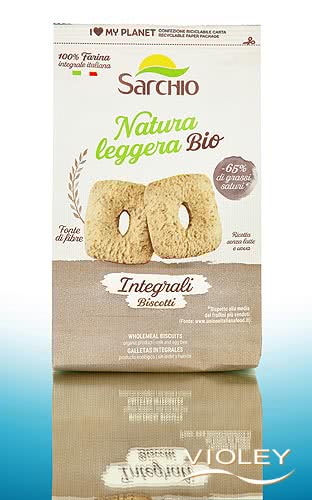 Sarchio Bio Biscotti Integrali. Diese italienischen Vollkornkekse werden aus wenigen, sorgfältig ausgewählten Zutaten gebacken, ganz ohne Milch und Eier. Feines Weizenvollkornmehl verleiht ihnen ihr charakteristisches Aroma. Ob zum Frühstück, zu einem Glas Milch, einer Tasse Kaffee oder Tee - diese Kekse laden zum Genießen ein.