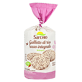 Sarchio Bio Gallette di Cereali. Die glutenfreien Getreidewaffeln werden aus Körnern hergestellt, die bei hoher Temperatur schonend und ohne Fett gepufft werden. Sie eignen sich als knuspriger Snack, als Brotersatz zu den Mahlzeiten, zum Frühstück oder als kleine Zwischenmahlzeit mit Aufstrich oder Marmelade.