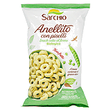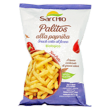 Sarchio Bio Paffito con Ceci. Die gepufften Sticks aus Mais und Kichererbsenmehl sind nicht frittiert, sondern wurden im Ofen gebacken. Ein wunderbarer Snack für den Abend in geselliger Runde oder einfach so zwischendurch.