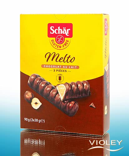 Schär Melto im 3er-Pack. Cremige Haselnussfüllung in knuspriger Waffel umhüllt von Milchschokolade. Der glutenfreie Genussmoment für zwischendurch - knusprig und cremig zugleich.