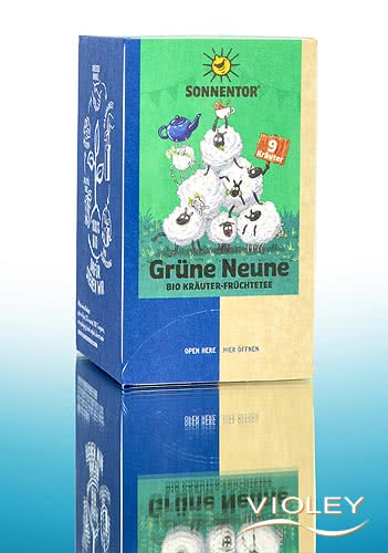 Sonnentor Grüne Neune Tee, 18 Aufgussbeutel. Mit diesem Kräutertee reiten Sie auf der grünen Welle. Gleich neun feine Kräuter bringen Sie heiter und schwungvoll durch den Tag. Wiesenfrisch!