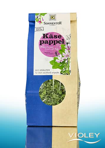 Sonnentor Käsepappel, lose. Die Blaue Malve, in Österreich Käsepappel genannt, ist genau das richtige Kräutlein, wenn der Frosch im Hals stecken geblieben ist. Die Käsepappel oder Wilde Malve hat mit der Pappel nichts zu tun. Ihre Blüten reifen zu käselaibartigen Früchten heran. Die helle grasgrüne Tassenfarbe, ebenso das krautige Aroma mit seiner leichten Säure, erinnert an frisches Gras im Frühling. Der Geschmack lässt sich am besten als intensiv, herb mit einer sauren Note beschreiben. Der Käsepappeltee passt aufgrund seines intensiv säuerlich-herben Geschmacks gut zur modernen Küche sowie zu japanischen Speisen wie Sushi und Maki. Er kann auch zu Steaks oder Lammeintopf serviert werden.