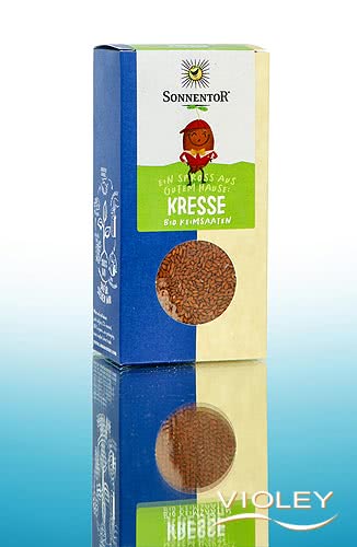 Sonnentor Bio Keimsaat Kresse. Die jungen Blätter der Kresse werden gerne als Salatbeigabe, zu Mayonnaise, Käse und Eierspeisen verwendet oder ganz einfach als Garnierung eines Butterbrotes. Mit einem Kressesieb können Sie bereits loslegen und Ihre eigene Kresse züchten.