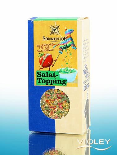Sonnentor Salat Topping. Diese Topping-Mischung steckt voller Köstlichkeiten. Gewürze, Blüten und Früchte sind die Draufgabe für jede Salatschüssel. Einfach nach der Zubereitung drüberstreuen, so werden Salate, Bowls und Käse zum Mittelpunkt jeder Fiesta.