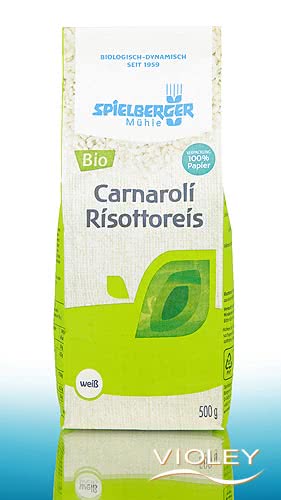 Spielberger Carnaroli Risottoreis. Carnaroli ist ein Mittelkornreis, die Körner sind zwischen 6 und 7mm lang. Für köstliche Risottos ist der Risottoreis Carnaroli eine gute Wahl. Er wird beim Kochen wunderbar cremig und behält gleichzeitg einen bissfesten Kern.