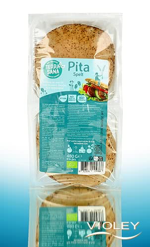 TerraSana Pita Dinkel. Eine schmackhafte Alternative zu klassischen Weizen-Pitas. Kurz auf dem Toaster, Grill oder im Ofen aufgebacken, können die kleinen knusprigen Broten nach Belieben mit Salat, Gemüse, Saucen oder sonstigen Köstlichkeiten Ihrer Wahl belegt werden.