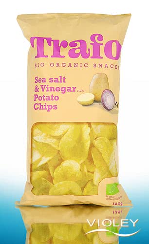Trafo Sea Salt and Vinegar Style Potato Chips. In Großbritannien gehört Salt & Vinegar seit vielen Jahren zu den populärsten Chips-Varianten. Die Chips mit Salz und Essig haben einen leicht säuerlichen und würzigen Geschmack. Genau das Richtige für entspannte Abende in geselliger Runde.