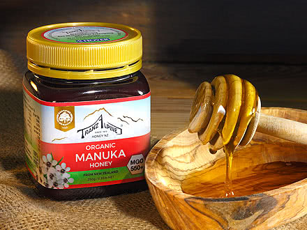 Die Imkerei Tranz Alpine Honey NZ Ltd aus Huntingdon, einer dünn besiedelten Ortschaft in der Region Canterbury im Süden Neuseelands, züchtet seit 100 Jahren Bienenvölker in Harmonie mit der Natur. 1993 ließ sie sich für ihre kontrolliert ökologische Bienenhaltung zertifizieren. Der wertvolle neuseeländische Bio-Manukahonig von Tranz Alpine wird in den Varianten MGO 100+, MGO 250+, MGO 300+, MGO 400+ und MGO 550+ angeboten. Manukahonig hat einen eher würzigen Geschmack, in dem auch eine dezente Schärfe wahrgenommen werden kann. Er kann pur eingenommen werden, schmeckt aber auch im Tee oder auf dem Frühstücksbrötchen. Entdecken Sie mit dem Bio-Manukahonig von Tranz Alpine die wohltuende Wirkung von Neuseelands begehrtestem Honig.