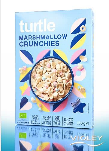 Turtle Marshmallow Crunchies. Schmackhafte Kombination von Vanilleflocken und knusprigen Marshmallows. Genau richtig, um gut gelaunt in den Tag zu starten.