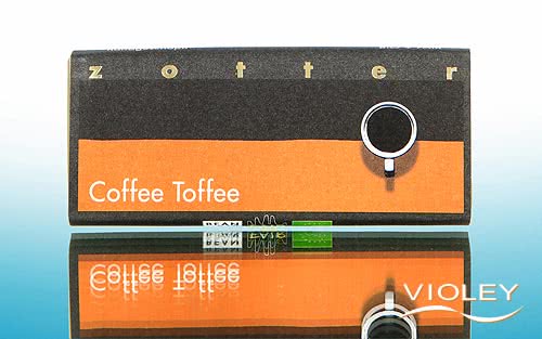 Zotter Coffee Toffee. Ein First-Class-Bonbon mit aufregendem Aromenspiel zwischen Karamell und Kaffee: eine feine Karamellschicht auf einem Mandelnougat, eingehüllt in Kaffeeschokolade, die diesen genialen Kaffee-Drive entwickelt, weil die Arabica-Kaffeebohnen direkt Bean-to-Bar in Kaffeeschokolade verwandelt werden.