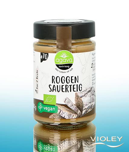Karin Lang Agava Organic Rye Sour Dough liquid. The liquid rye sourdough is a helper for homemade, fresh and fluffy bread. The glass is enough for 2 loaves or 1 kg of flour. Depending on the recipe, add the whole or half sourdough to the flour mixture.