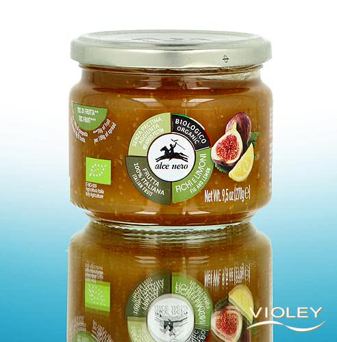 Alce Nero Organic Fig and Lemon Spread. This delicious spread contains only figs and lemons from Italian organic farmers. It combines the sweetness of figs with the fruity acidity of lemons. The fruit content of 70% is based on 61% figs and 9% lemons. Sweetened with glucose. No added pectin. Fig and lemon jam tastes great as a spread, but is also suitable for refining pastries and for a variety of other uses in the kitchen.