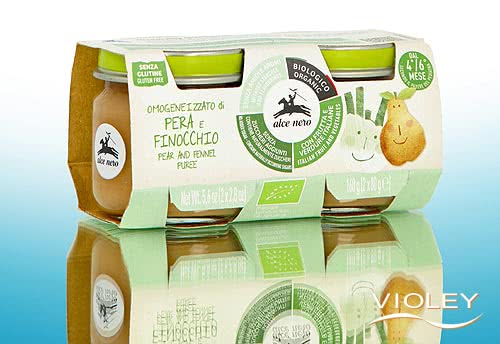 Alce Nero Organic Fruit Puree Pear with Fennel. The juicy pears and fennel used for this purée come from Italian organic farmers. The fruit and vegetables are selected, washed, cut, and then finely minced and homogenized to make them easy to swallow. No added sugar (ingredients naturally contain sugar). This allows children to experience the taste of fruit and vegetables as naturally as possible. Suitable from 6 months.