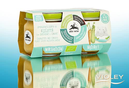 Alce Nero Organic Vegetable Puree Courgette, Carrot with Ricotta. Zucchini and carrots from Italian organic farmers are combined with creamy ricotta. The vegetables and ricotta are processed together and then finely minced and homogenized to make them easy to swallow. After filling, the jars undergo heat treatment to support shelf life. Suitable from 6 months.