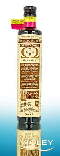 Amanprana Okinawa Omega Happy Perilla Special. The organic vegetable oil blend contains selected oils from hemp, perilla, nigella or evening primrose oil, amongst others. Oil from orange, lemon and lime peel harmoniously round off the blend.