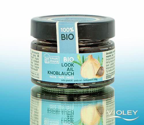 Amanprana Organic Black Garlic Paste. With the black garlic paste you can either marinate meat, fish or refine sauces. The paste is also delicious as a spread on bread or sandwiches. Black garlic is fermented garlic, also known as aged garlic, aged garlic extract and black garlic. It all starts with plain garlic (Latin name: Allium Sativum). When kept in a closed and controlled space, at an ambient temperature of 65°C and at a humidity of 85°C, the garlic transforms into the black version of itself. It takes the garlic 65 days and a drying time of 48 hours to do this. During this process, its taste becomes sweet and it loses its distinct odour.