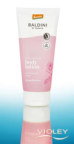 Baldini Body Lotion Rose. Sensitive, nourishing body lotion with shea butter and rose for sensitive skin. A lovely rose fragrance envelops you in a floral embrace, while precious jojoba oil and high-quality rose oil intensively moisturise your skin. The delicate, velvety texture melts onto the skin, is quickly absorbed and leaves your skin feeling wonderfully soft. This body lotion supports sensitive skin with caressingly soft care and a cosy skin feeling.