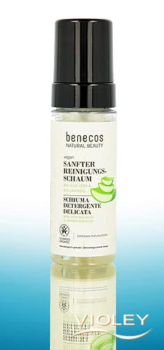 benecos Gentle Cleansing Foam. The formulation with organic aloe vera juice and organic lavender extract gently removes sebum, make-up and dirt - for instant freshness and clean, revitalised skin.