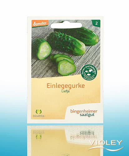 Bingenheimer Saatgut Seeds of Organic Cucumber Liefje. High-yield pickling cucumber, which is also suitable as a snack cucumber with its good, aromatic taste. The young plant should still be small when planted and after planting the plant must be able to grow quickly.