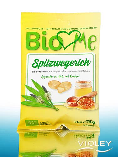 Bio Loves Me Organic Ribwort Bonbons. These organic sweets with ribwort extract and honey filling are made according to a classic recipe. Refined with eucalyptus oil and natural menthol.