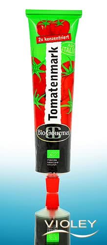BioGourmet Organic Tomato Paste. Freshly harvested, sun-ripened tomatoes await you in this tube. Double-concentrated, the full flavour of the tomatoes is preserved. This variety of flavours will delight you with its many uses.