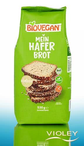 BioVegan Organic Bread Mix Oat Bread. For this bread mix, oat flakes, wholemeal oat flour, corn flour and other ingredients are processed. The package is sufficient for approx. 850 g of ready-made oat bread.