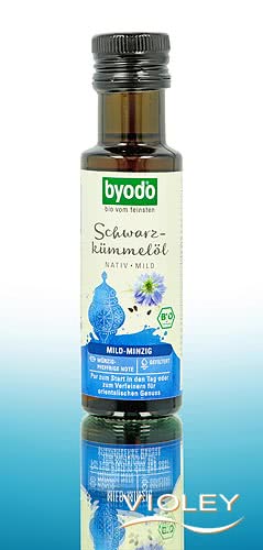 Byodo Organic Black Cumin Seed Oil virgin. From Ayurveda in ancient India to the advanced civilisation of the pharaohs and the mystical Orient, black cumin has been regarded as a precious medicinal plant for thousands of years. The characteristic flavour of its oil combines spicy pungency with minty freshness. Peppery notes meet subtle ethereal nuances of eucalyptus and herbs, making it a culinary highlight.