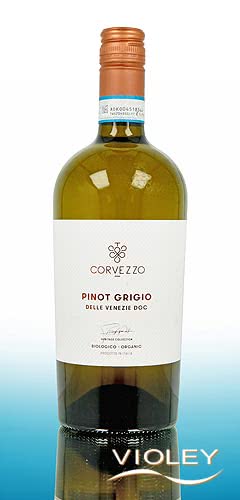 Corvezzo Organic Pinot Grigio Delle Venezie DOC. This organic Pinot Grigio offers delicate fruity notes and lively freshness. Its bouquet revelas hints of citrus and peach, providing a light und refined experience on the palate.