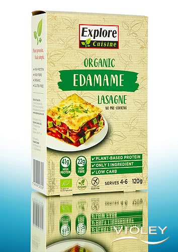 Explore Cuisine Organic Edamame Lasagne. A modern alternative to classic pasta. These lasagne sheets made from edamame beans bring a fresh taste and a delicate green colour to the plate. They go wonderfully with Mediterranean or Asian dishes and provide a varied cuisine with a special flavour.