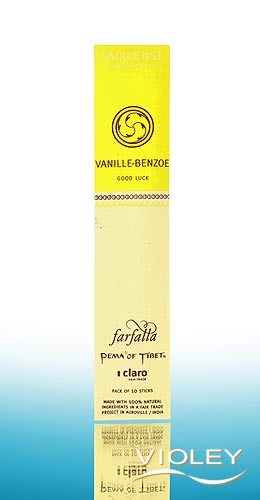 Farfalla Faircense Incense Stick Vanilla Benzoe. A delightful mixture of benzoin, combined with sweet vanilla. The scent obtained from benzoin resin is warm, balsamic and sweet. For Faircense Incense Sticks, pure natural essential oils are blended with flowers, herbs, wood and natural resins.
