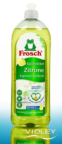 Frosch Dishwashing Liquid Lemon. Cleans the dishes spotlessly shiny. The powerful formula with lemon efficiently removes grease and dirt. The dishwashing liquid is gentle on the skin.