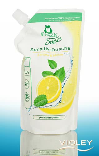 Frosch Senses Lemon mint Sensitive Shower Gel in a family-friendly 500 g refill pack. With the summery-fresh scent of lemon mint. The soft formula gently cleanses the skin thanks to selected ingredients. The care formula is free from colourants.