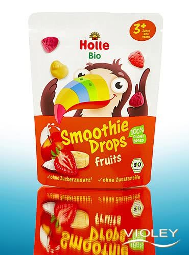 Holle Organic Smoothie Drops Fruits. Vegan, freeze-dried snack that combines pure fruit with creamy coconut milk. These special drops, which melt in the mouth after a short time, offer a fruity and tasty treat for all young and old snack fans. From 3 years. 100% plant-based and with no added sugar (ingredients naturally contain sugar).