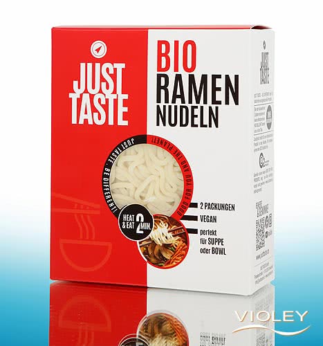 Just Taste Organic Ramen Noodles. The popular Japanese noodle variety ramen originally comes from China and means hand-pulled noodle. Around the world, ramen is synonymous with noodle soups. Enjoy ramen in soups, bowls or with lots of vegetables.