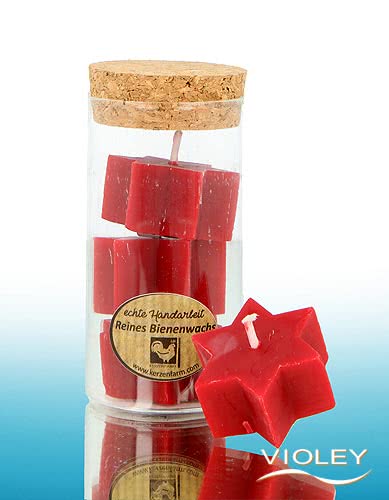 Kerzenfarm Hahn Bees Wax Candle Stars in a Cylinder, red. Made from 100% beeswax and handcrafted. The star-shaped candles are a real eye-catcher and create a warm and cosy atmosphere with their candlelight.