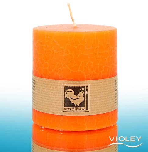Kerzenfarm Hahn Pillar Candle Orange Cracklee 85 x 80 mm. The beautiful orange coloured pillar candle with the marble-like surface provides pleasant light and an atmospheric ambience. The quality paraffin waxes burn without residue. Kerzenfarm Hahn uses only selected wicks made of 100% cotton.