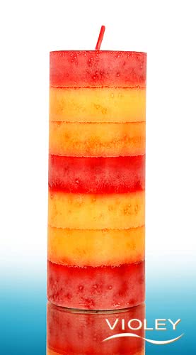 Kerzenfarm Hahn Nordic Pillar Candle Red Tones 150 x 60 mm. Alternating, this hand-poured and cloudy through-coloured paraffin candle shines in red, orange and yellow. Candles create their own mood in a room depending on the colour. Red tones are the classic representatives of love, friendly and lively conversations, and also of warmth. Look forward to a wonderful flickering light atmosphere as background for cosy evenings alone, as a couple or with good friends. Paraffin candles burn quietly without dripping or sooting and have a long burning time.