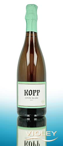 Kopp Cuvée Blanc Sparkling Wine Brut. In the footsteps of great champagnes, but paired with fruit-orientated grape varieties, this sparkling wine cuvée is a real treat for the palate for newcomers to sparkling wine. Riesling, Muscat and Gewürztraminer offer exotic freshness, with flavours of lychee, white flowers, nutmeg and citrus fruits. This sparkling wine also exudes lightness on the palate and is long-lasting with a creamy, full-bodied mousse.