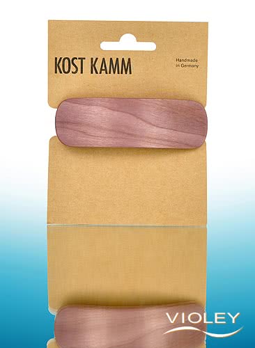 KostKamm Barrette, oval, purple dyed plywood, clasp 10 cm. Set a colourful accent. the oval hair clip in elegant purple combines a clear, modern look with the natural warmth of laminated wood. The sturdy 10 cm clasp ensures a reliable hold and makes the barrette the perfect companion for elegant everyday and office looks.