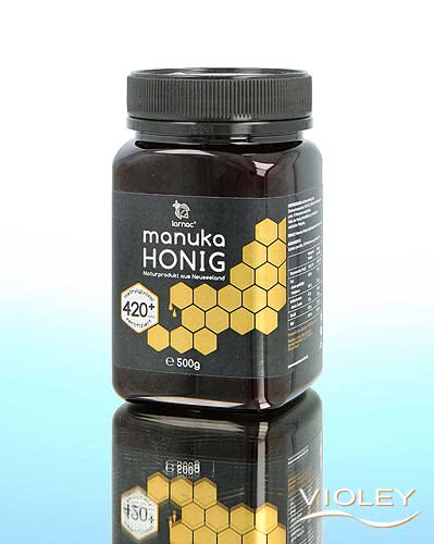 Larnac Manuka Honey MGO 420+ in the large screw box with 500 grams. This pure manuka honey from sustainable beekeeping is obtained from the blossom of manuka trees that grow freely in untouched coastal regions of New Zealand. Manuka honey has been esteemed since centuries by New Zealand's natives, the Maori.