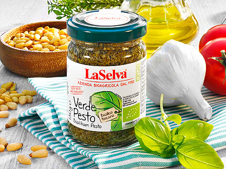 By the way: LaSelva Pesto does not only taste great with pasta, it is also delicious on toasted bread, in vegetable soups and risottos, as a dip for raw vegetables and potatoes or with meat or in salad dressings. Buon appetito!