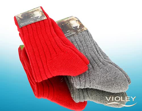 MUM Sox Merino Wool Socks red/grey, size 39-42. A content of 62% sheep's wool makes these socks cuddly soft and extra warm. With a wide cuff for a firm fit. High wearing comfort whether worn in sturdy hiking boots or without shoes.