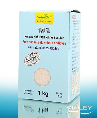NaturGut Pure natural salt ground in a compact 1kg carton. It is only in recent years that the special value of crystal salt as a natural heritage of the primeval sea has been recognised. The fine crystal salt from Naturgut is extracted in Punjab, a Pakistani foothill of the Himalayas. It is natural and impresses with its pure originality. No additives of any kind have been used in this uniodised salt.